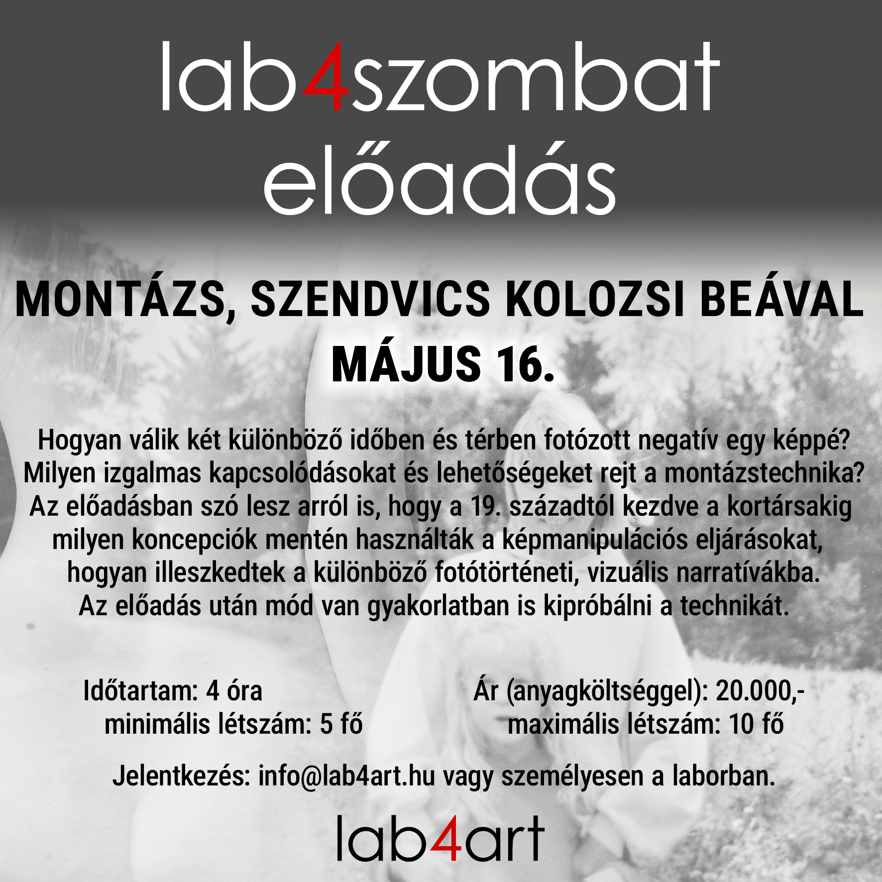 Az előadásban szó lesz arról is, hogy a 19. századtól kezdve a kortársakig milyen koncepciók szerint használták a képmanipulációs eljárásokat, hogyan illeszkedtek a különböző fotótörténeti, vizuális narratívákba.
